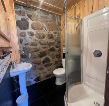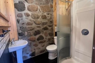 Chambre confortable avec deux lits doubles, pour 2, 3 ou 4 personnes, avec salle de bain privative, vue sur la rivière et accès privatif au spa.